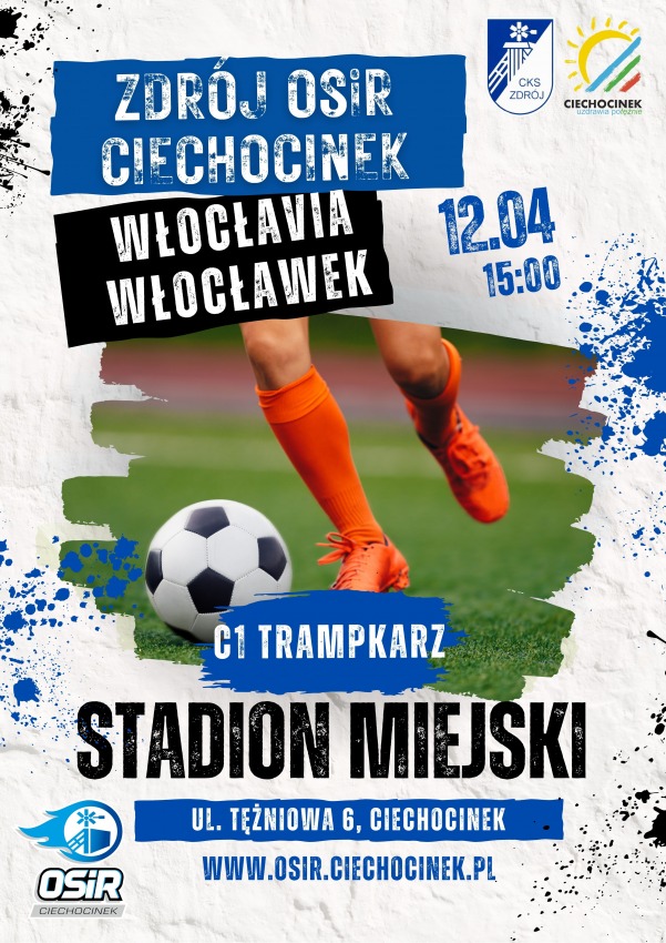 | Opis: | W niedzielę 12 kwietnia o godz.15:00 na stadionie Miejskim przy ul. Tężniowej 6 w Ciechocinku odbędzie się mecz Ligi Trampkarza w piłce nożnej. Zagrają Zdrój OSiR Ciechocinek vs. Włocłavia Włocławek. |